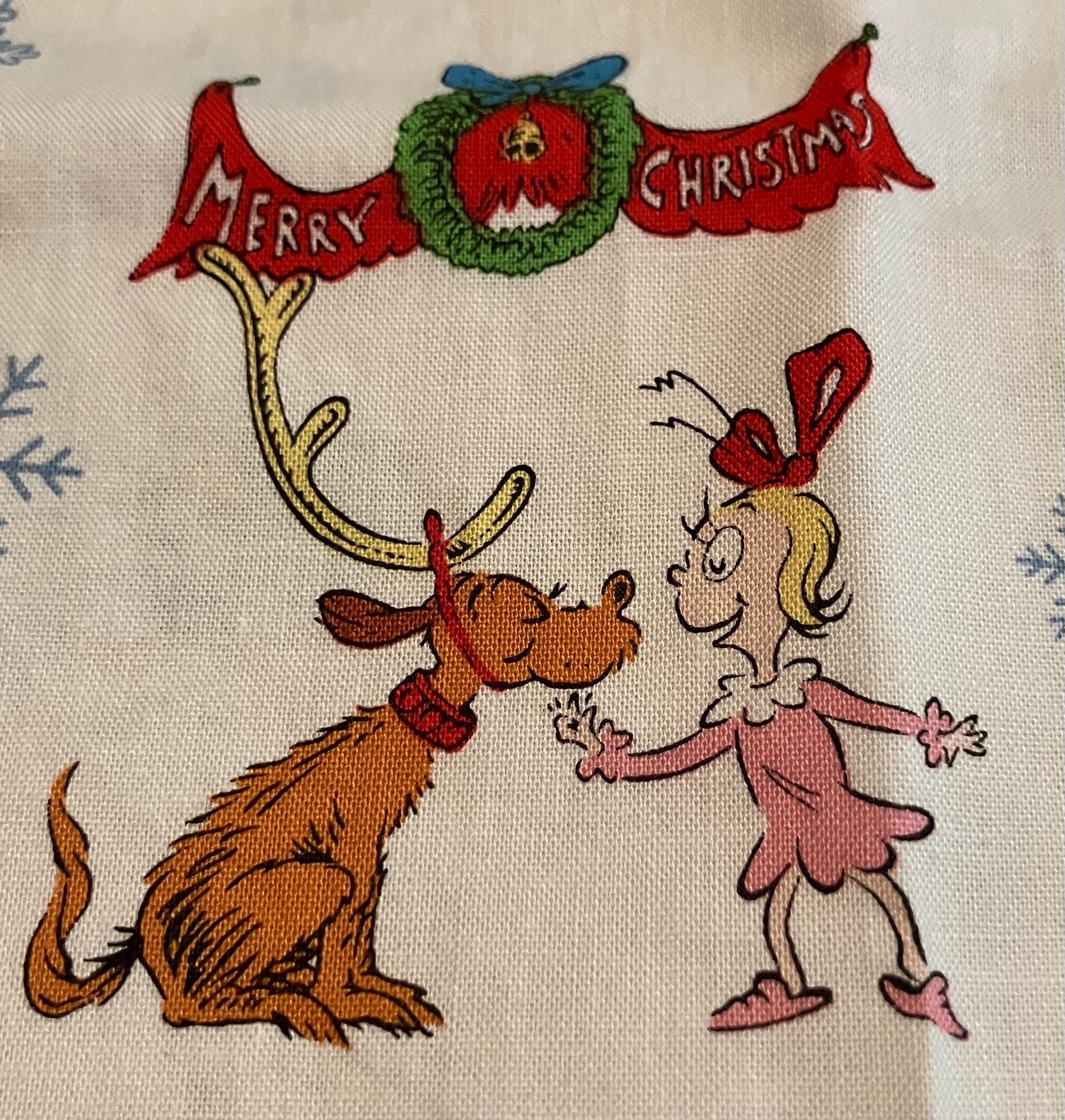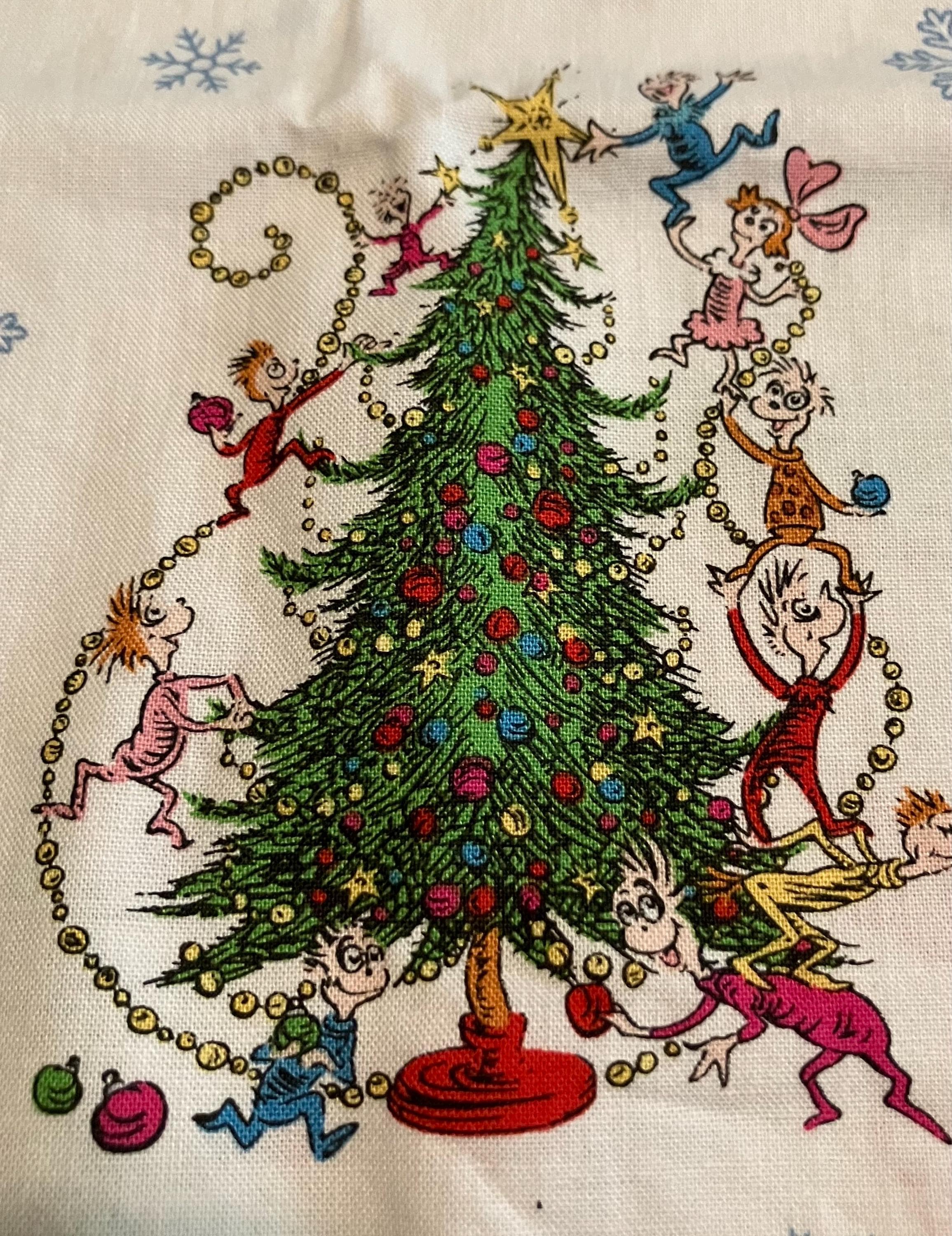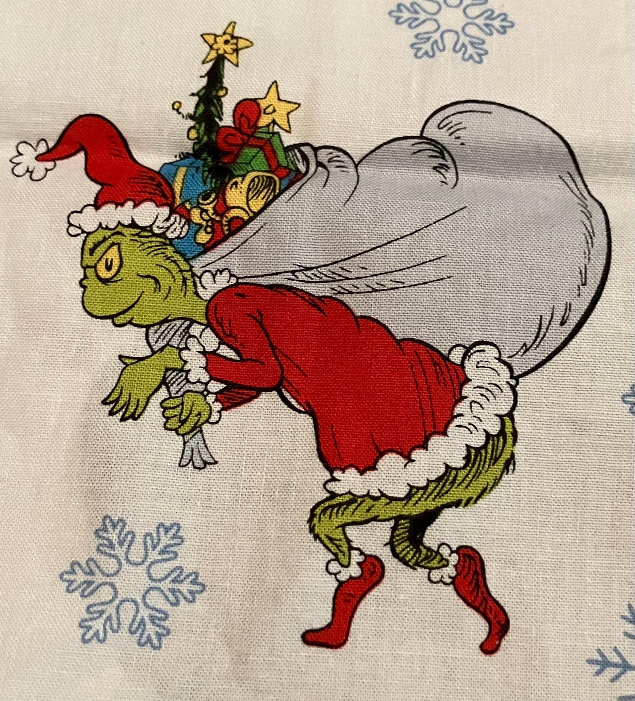 Countdown the days to Christmas with the Grinch! Fabric panels features a scene from the original Dr. Seuss book “How the Grinch Stole Christmas” surrounded by pockets also featuring original characters. Pick the character or scene you want to help you count up to Christmas or you can put small treats in each pocket.